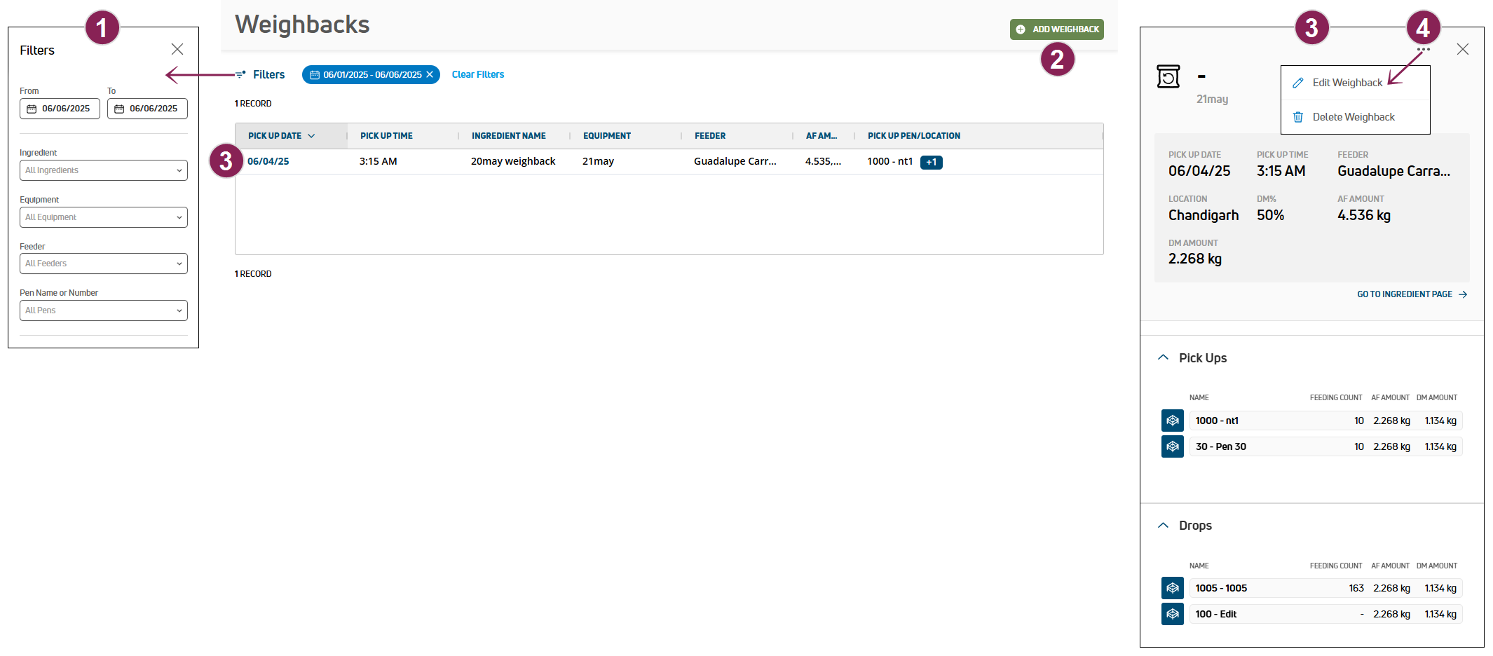 TIP: You're currently viewing online help for weighbacks in FeedComp on PULSE. Click here to see online help for weighbacks in the FeedComp mobile app.